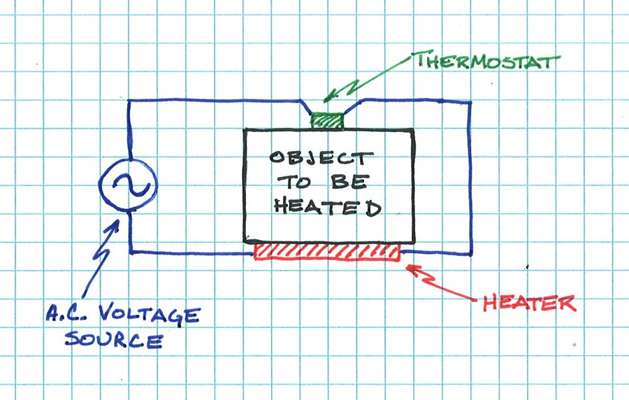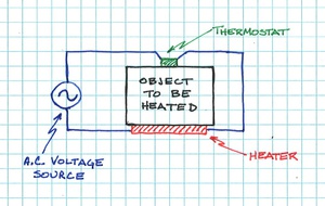 Granted, it’s not a two-terminal bi-metal thermostat. Figure 1 is a mechanical representation of a traditional minimal heating system—you’ve got the object to be heated, the thermostat, the heater,